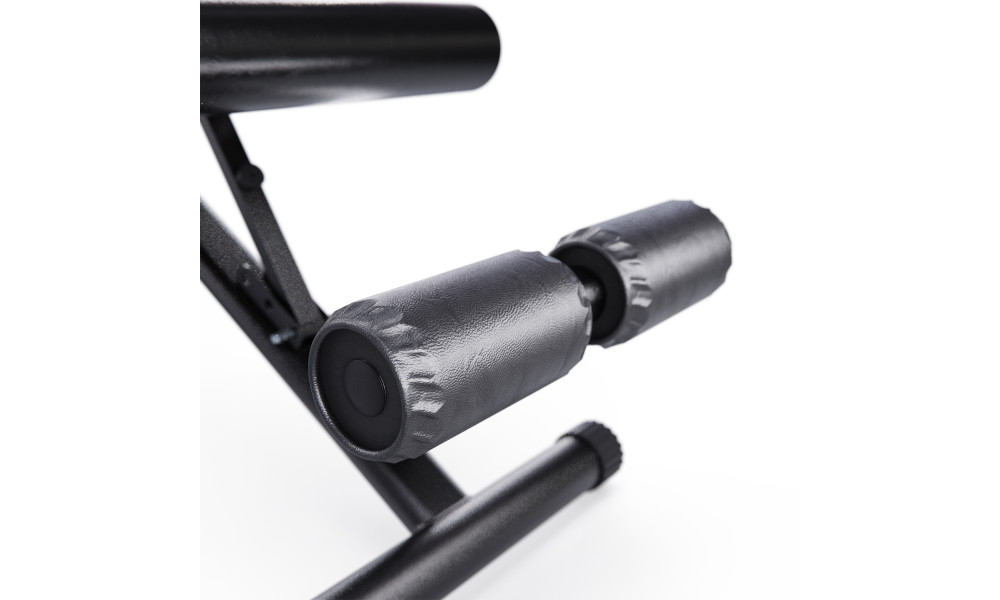 Покрытие из экокожи и набивка спинки и сиденья толщиной 45 мм обеспечивают комфорт во время тренировок, а уникальная форма сиденья скамьи для пресса позволяет снизить мышечную усталость и обеспечивает отличную поддержку ног. Нескользящие ножки обеспечивают надежное сцепление с полом и предотвращают скольжение во время тренировки, увеличивая безопасность.